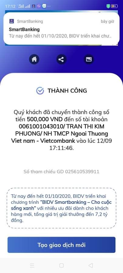 Bạn Cam ủng hộ 500.000đ, đã chuyển khoản.