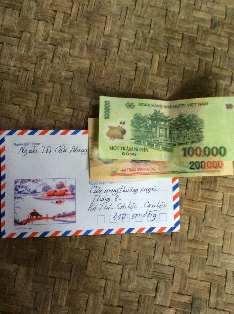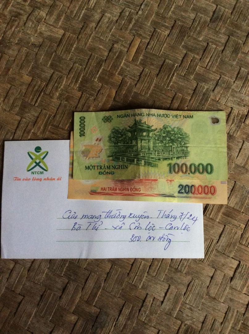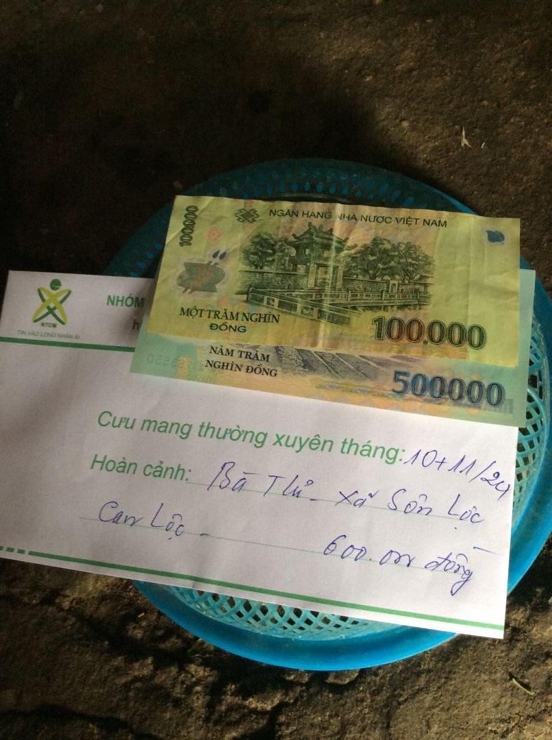 Số tiền 5tr VND đã chuyển trước cho anh Hùng để trao dần tới bà Thỉ ạ.