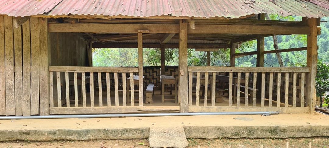 Trường được làm cách đây 20 năm, hiện nay các em vẫn đang học tạm trong các lớp học làm bằng tre nứa, mùa hè thì nóng bức, mùa đông gió lạnh thấu xương.