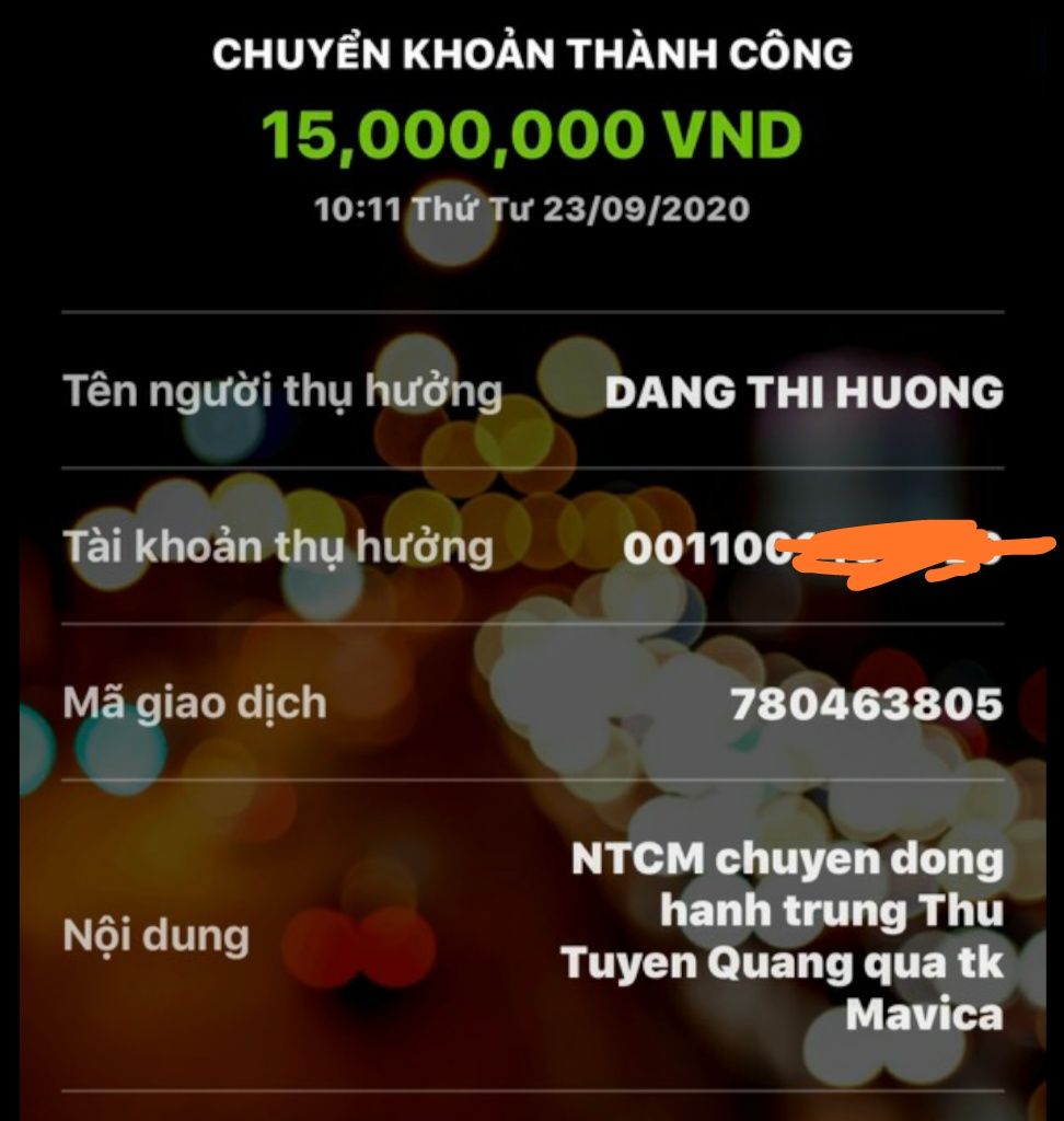 Letuantu đã nhận và chuyển tiền vào tài khoản chị Thocon.