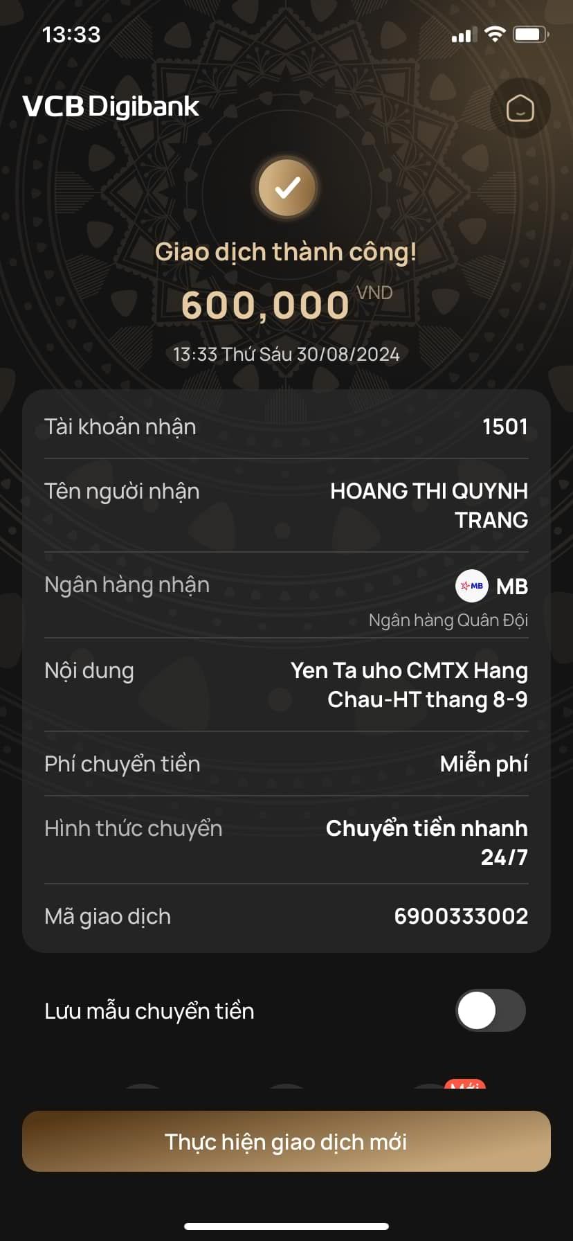 Quỹ đã chuyển 1.500.000đ trích quỹ CMTX T4-5-6 2024 đến cháu Hằng. Nhờ cháu Hằng kiểm tra và xác nhận giúp nhé.