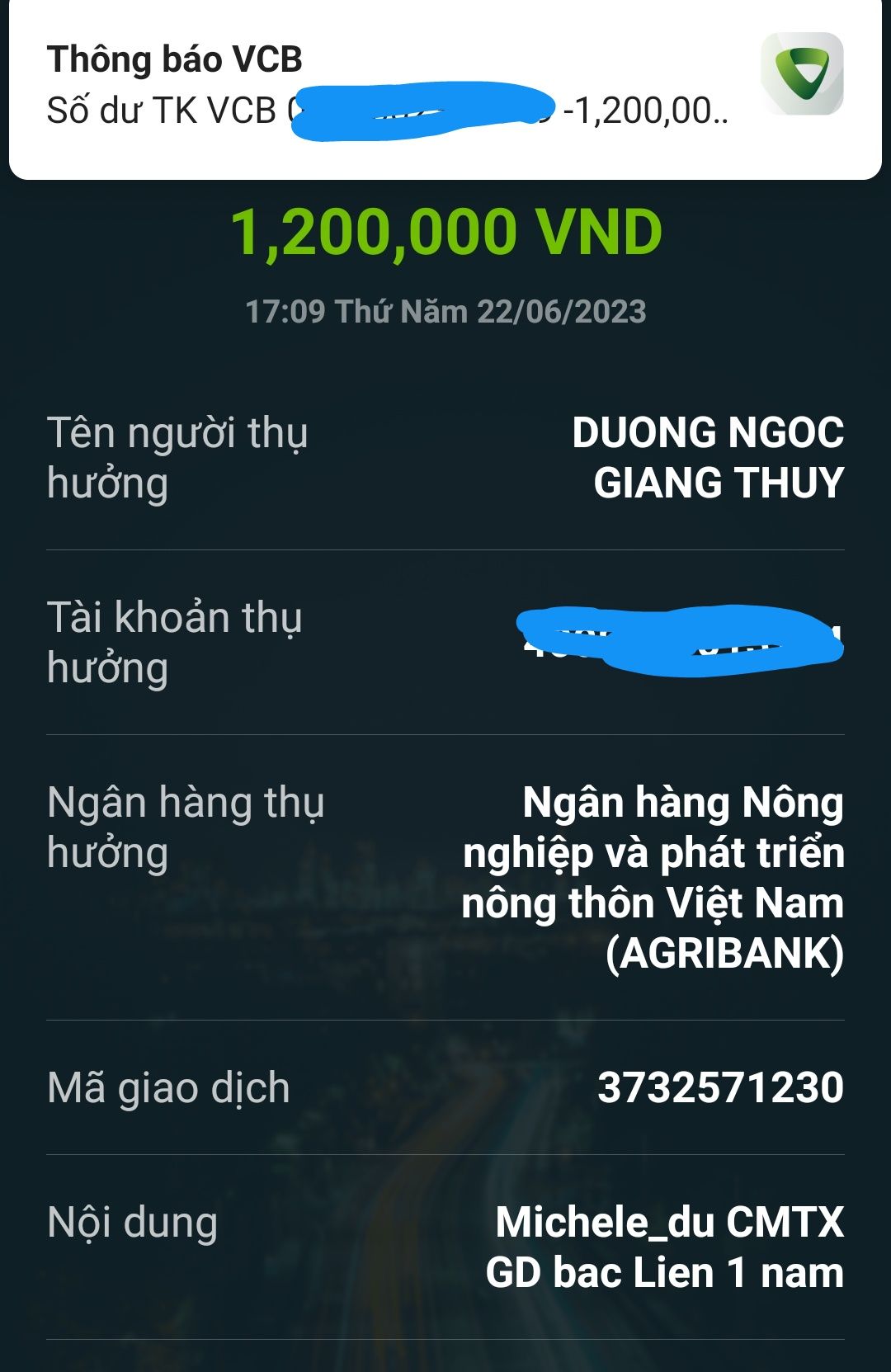 @trangvitgioi : Em xuất quỹ NTCM chuyển tới Wendy Duong 1,200,000₫ tiền CMTX Gia đình bác Liên 6 tháng kể từ tháng 6/2023 dùm nhé.