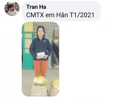 Nhóm Huế cập nhật hình ảnh trao CMTX Tháng 1, Tháng 2/2021 và trao quà Tết đến em Hân.
