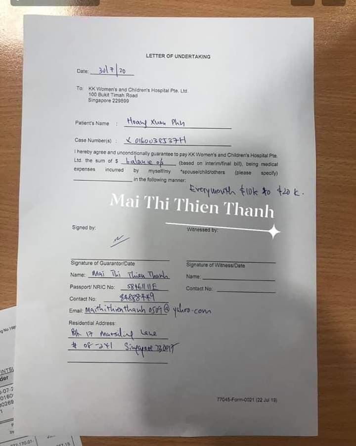 Bé Xuân Phú được chị Thiên Thanh mang qua Sin và ký giúp giấy nợ, lúc đó bé rất gầy gò, ai cũng bảo hết duyên, hết hy vọng, nhưng gia đình vẫn không bỏ cuộc. Chị Thiên Thanh giàu lòng trắc ẩn cũng cố gắng giúp mang bé qua Sin trong tình trạng như vậy, tuy nhiên, mọi việc không thuận lợi, vừa lúc dịch Covid xuất hiện, facebook của chị Thiên Thanh cũng bị khóa mất hết Mạnh Thường Quân, nên việc kêu gọi trở nên khó khăn. Lúc mới đến, bé được đưa đến viện NUC với phí 7 tỷ quá cao, do vậy gia đình tìm được 1 viện khác là kk women's and children's hospital với phí tầm 4 tỷ. Và gia đình bắt đầu lên trang quốc tế Give Asia nhờ kêu gọi giúp, với 4 tỷ VNĐ là 1 con số khá lớn, và theo sắp xếp sẽ chia ra 2 đợt nhưng đen quá đợt vừa rồi chính phủ lại chỉ cho kêu 3 tháng nên mới đóng luôn, chỉ kêu gọi được $151,948. Gia đình cũng không ngờ bé có thể trụ nổi đến ngày hôm nay, mặc dù còn phải theo dõi sức khỏe của bé, thiếu nợ trong tháng, còn 1 tháng nữa mong là bé có thể về Việt Nam lành lặn, bé sẽ còn phải vào lại viện trong nước ở Hà Nội để uống thuốc và kiểm tra tiếp, nhưng đây là 1 hành trình đầy trắc trở, nghị lực và đầy tốn kém ạ, bé còn cả 1 tương lai phía trước, vừa phải chiến đấu bệnh tật, vừa trong hoàn cảnh khó khăn lâu dài.