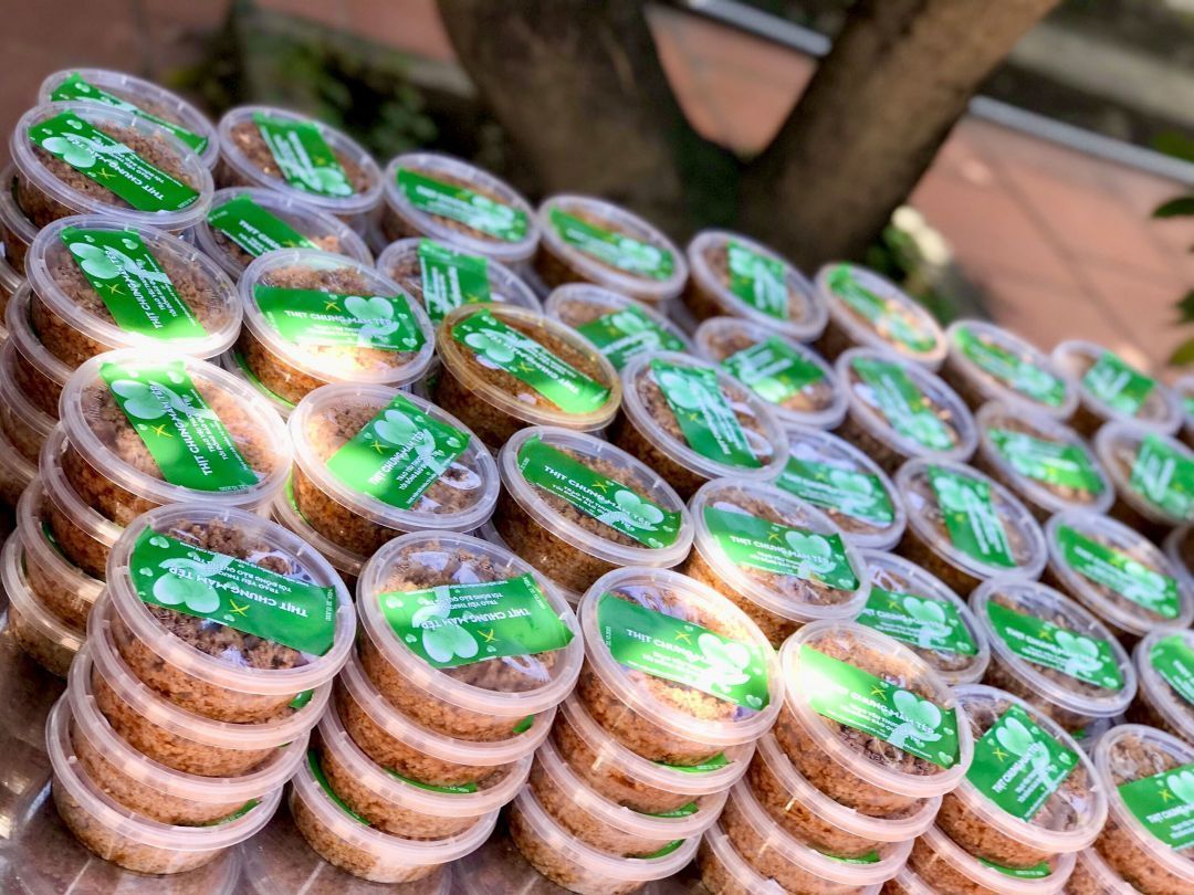 - Thịt chưng mắm tép 300 phần : Có một ít đóng gói không được cẩn thận do hết hộp có nắp vặn cần mua túi nilon để buộc ngoài
