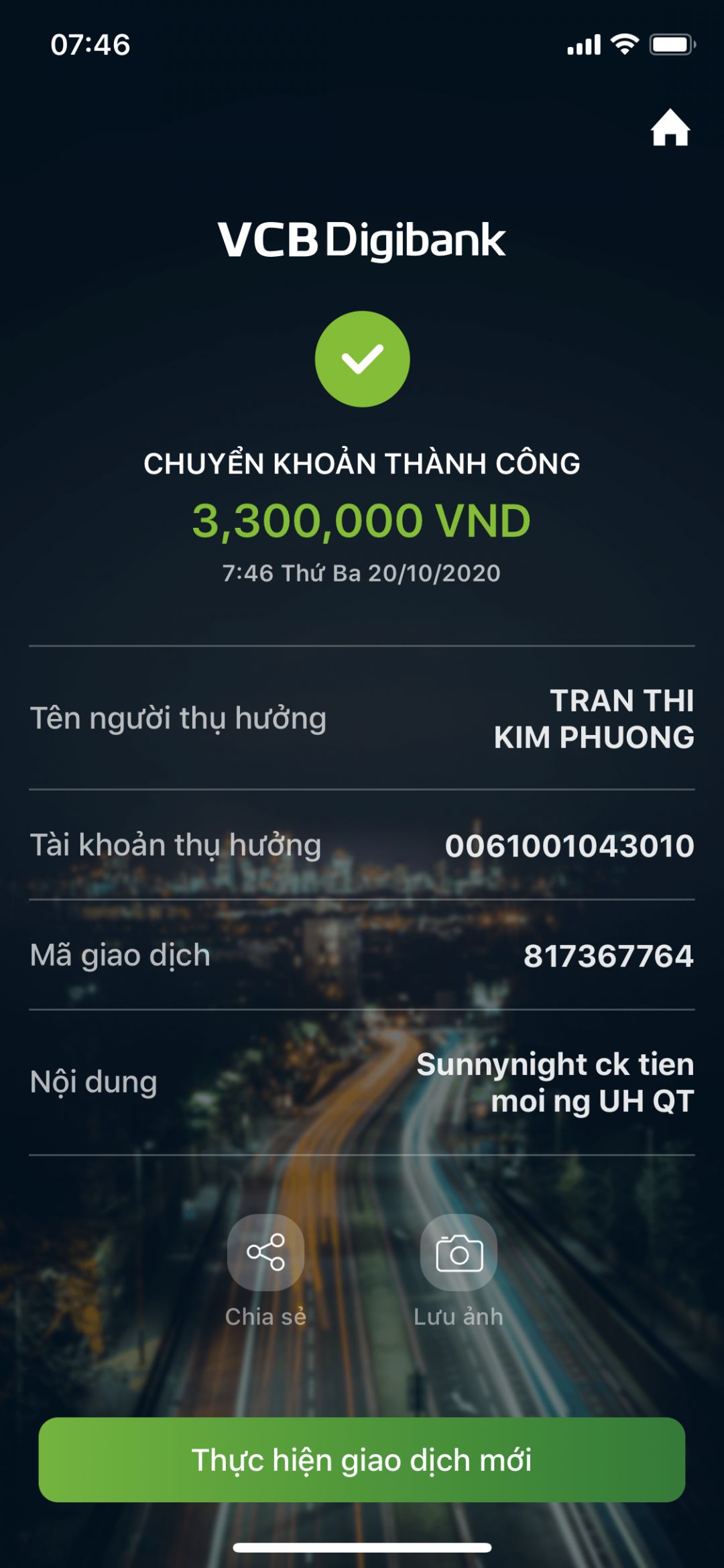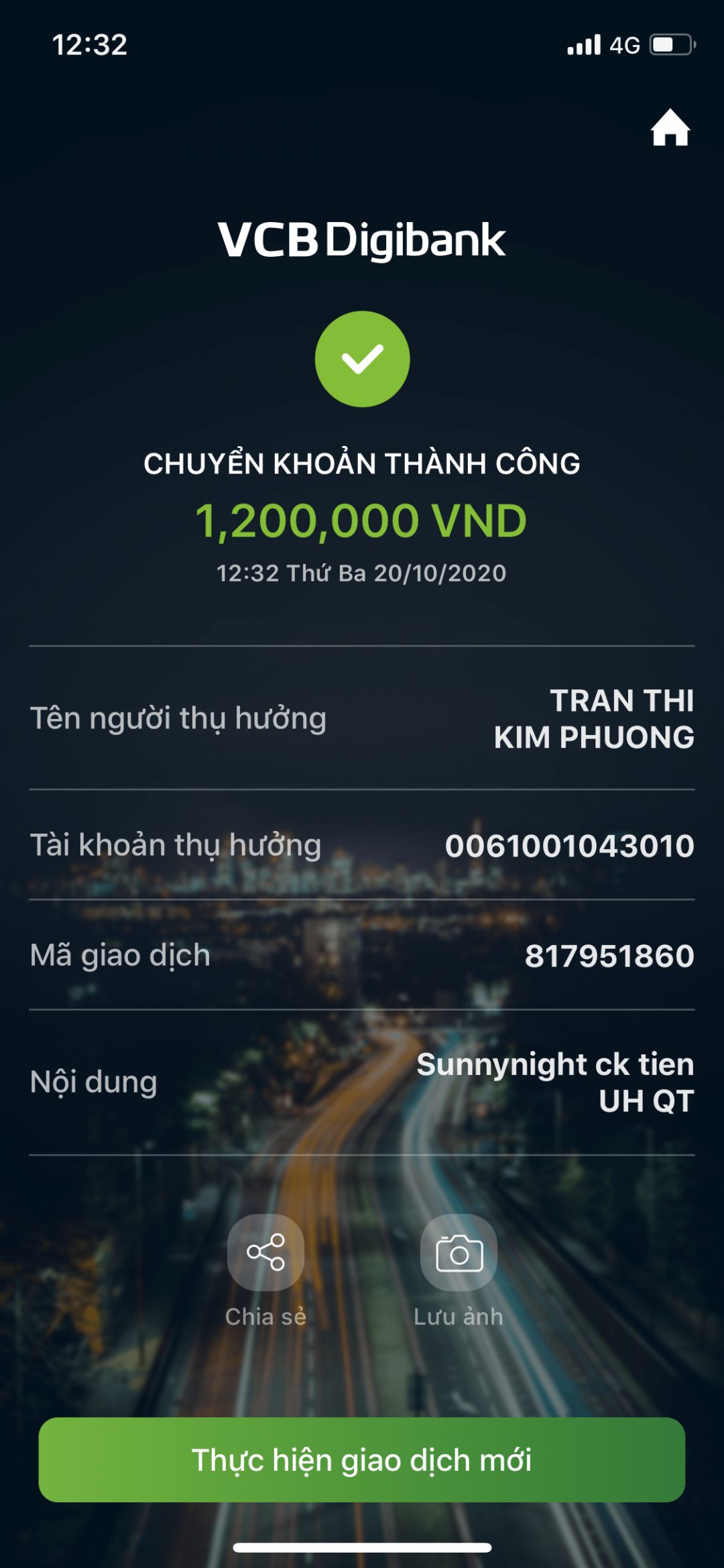 Tất cả đều được chuyển khoản vào TK rồi nhé. Cảm ơn các anh/chị/bạn rất nhiều ạ !
