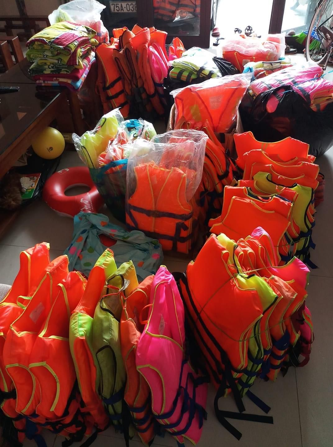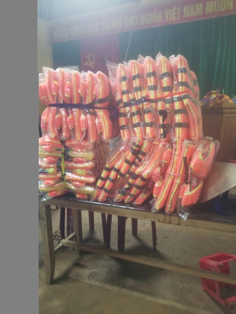 Số áo phao mua và quyên góp được sẽ được chia ra trao cho các đội thanh niên ở các thôn để phục vụ công tác cứu hộ (mới phát cho hai thôn mỗi thôn 25 cái, số còn lại nhóm QT sẽ phát nốt).