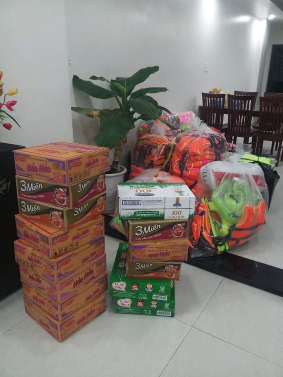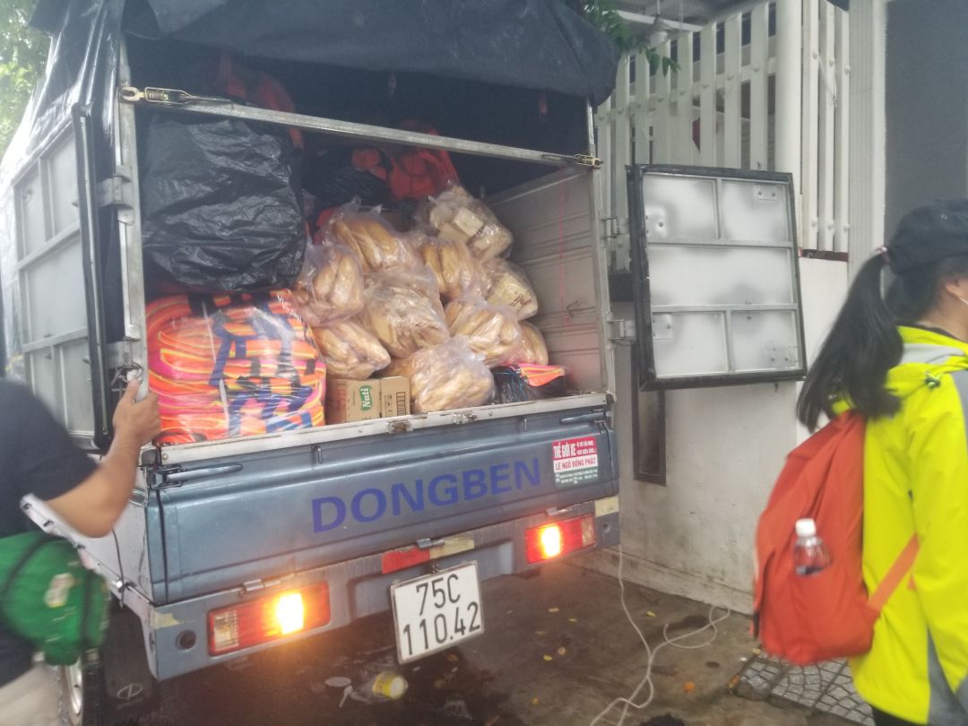 Nguyên 1 xe tải 800kg gồm nhu yếu phẩm, áo phao, lương thực được mọi người ủng hộ thêm vận chuyển từ ĐN và Huế cũng được chia luôn.