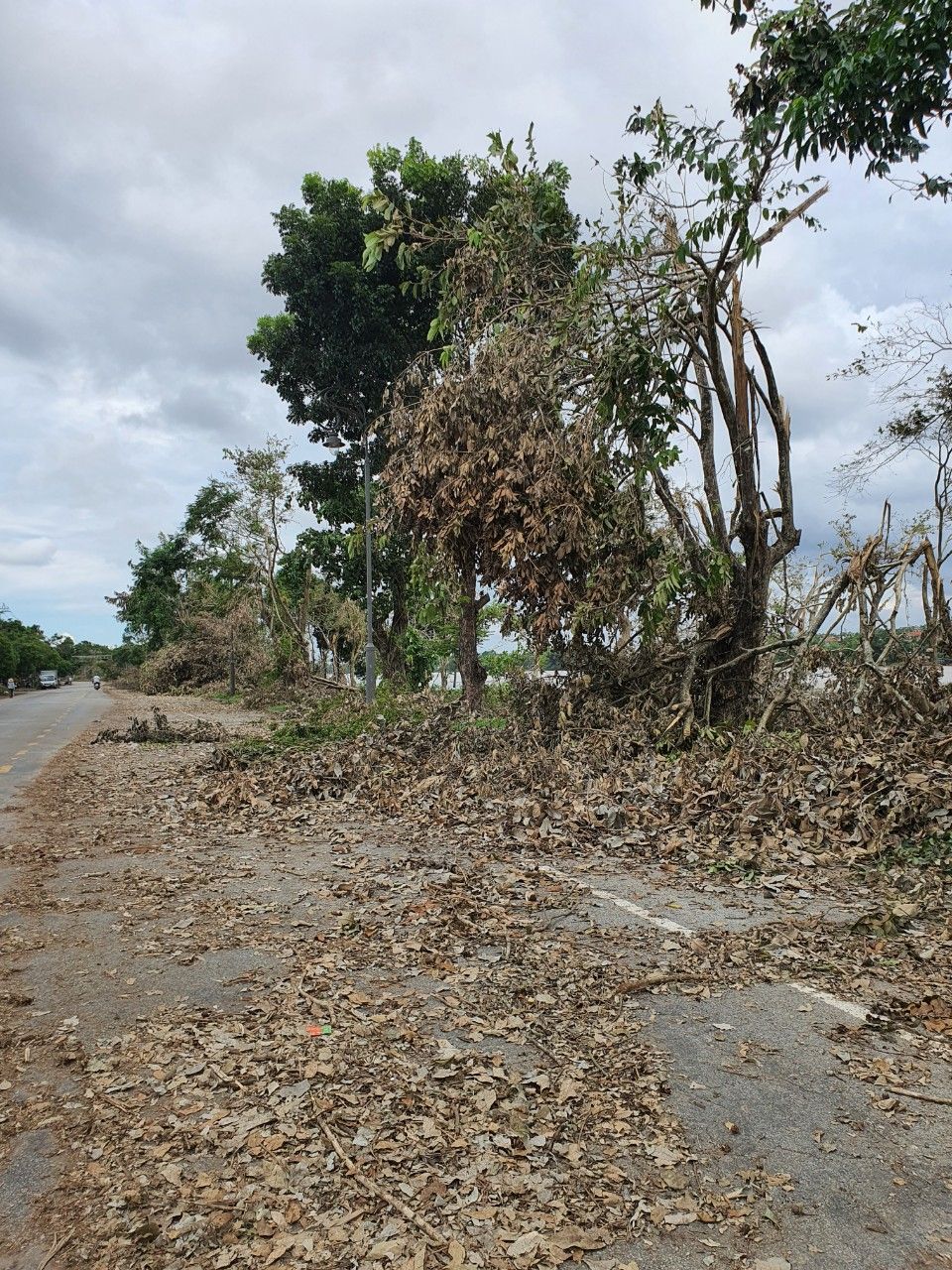 Hình ảnh sau ngay bão Khu Kim Long Hương Hồ. Cây và lá rụng. Hình ảnh, video đỉnh lũ ngày 10 ở Kim Long và hình ảnh Đường sá nơi đây sáng 12 - Khi Huế nhiều nơi đang ngập sâu thì Kim Long  đã sạch sẽ. Toàn bộ là hình ảnh chân thực, tự chụp, đóng dấu NTCM, không lấy từ nguồn mạng.
