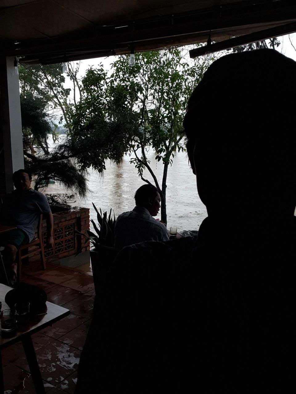 Hình ảnh, video cafe 96 vẫn mở cửa ngày đỉnh lũ. Nước sông Hương khu Kim Long.