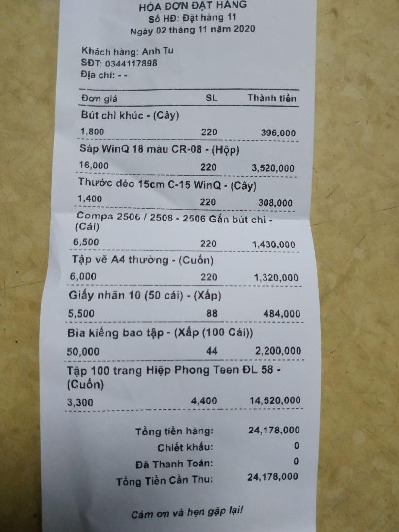 Em vừa nhận số bút mực gửi ra từ Sài Gòn. Và thanh toán 1.000.000đ.