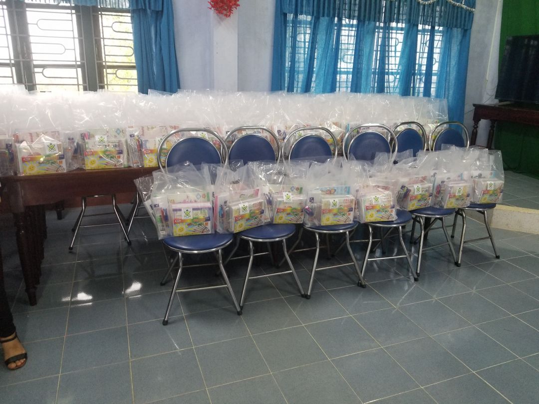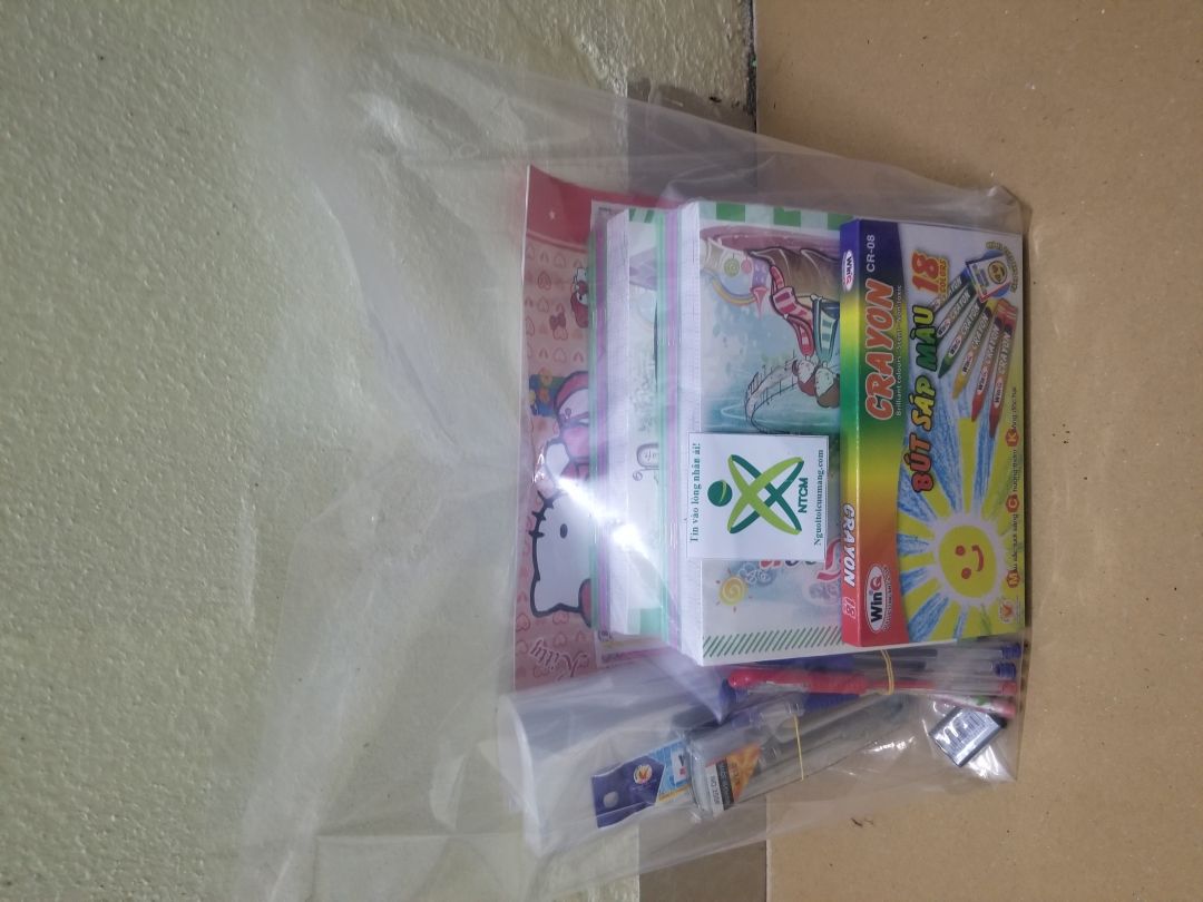 Hỗ trợ và giúp đỡ các em vở học cũng như 1 số đồ dùng học tập. Suất quà gồm: