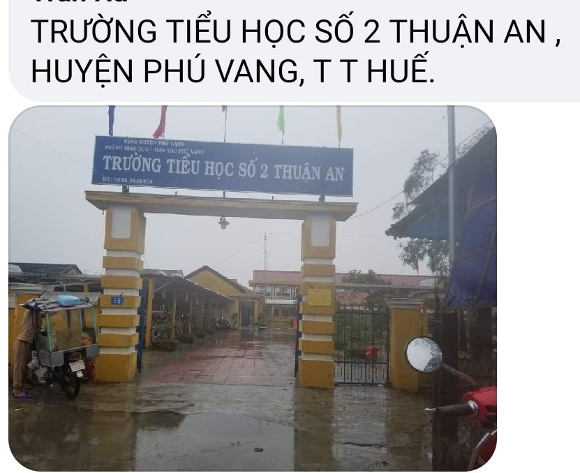 Trường TH Số 2 Thuận An tuy không ảnh hưởng nhiều về trường lớp, nhưng 1 số gia đình học sinh ở vùng ven biển lại bị ảnh hưởng trong các đợt bão lụt. Nên qua khảo sát và nắm tình hình chung ở trường, nhóm đề xuất tặng 57 suất quà đến 57 học sinh ở các khối lớp bị ảnh hưởng.