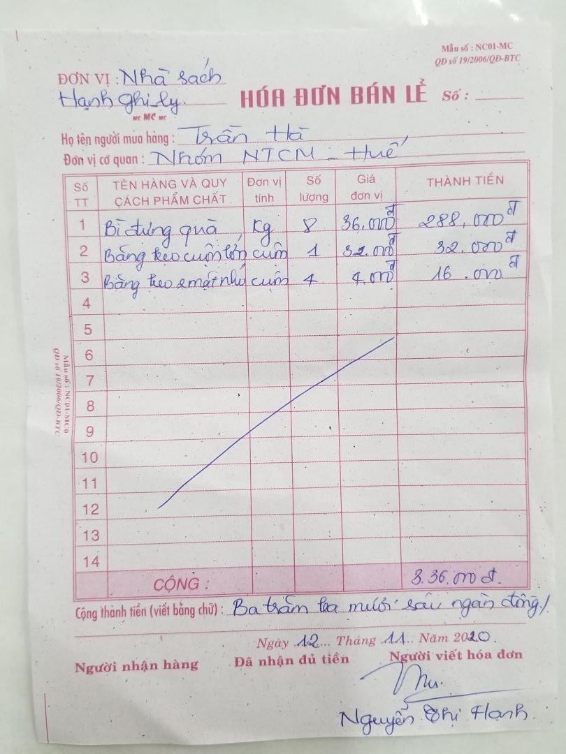 10). Nhãn vở: (170 suất x 10 cái/ 1 suất) = 1.700 cái x 300đ/1 cái _ 510.000Đ