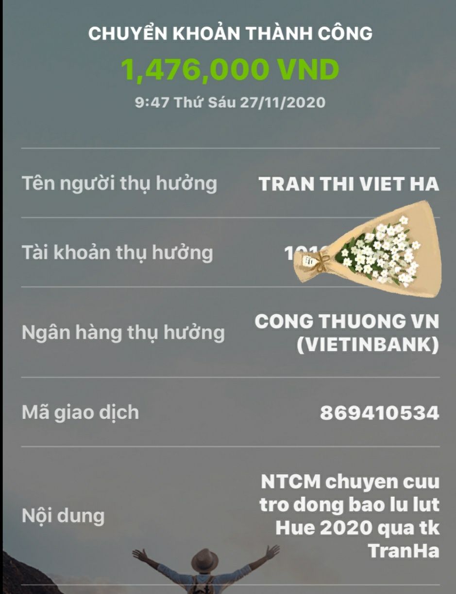 Cảm ơn các bạn Huế đã nối tiếp chương trình ta nghĩa, rất tinh thần NTCM - Sát thật, sâu sát và đồng hành cùng đồng bào vùng lũ một cách thiết thực.
