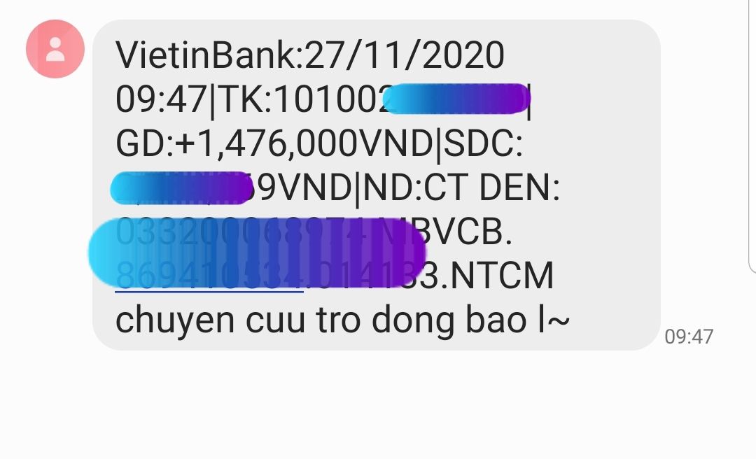 Anh Khanh Canada (Ken Le) góp 5.000.000đ  để các bạn mua giúp dụng cụ học tập cho các em vùng lũ đợt này. (Đã chuyển quỹ NTCM).
