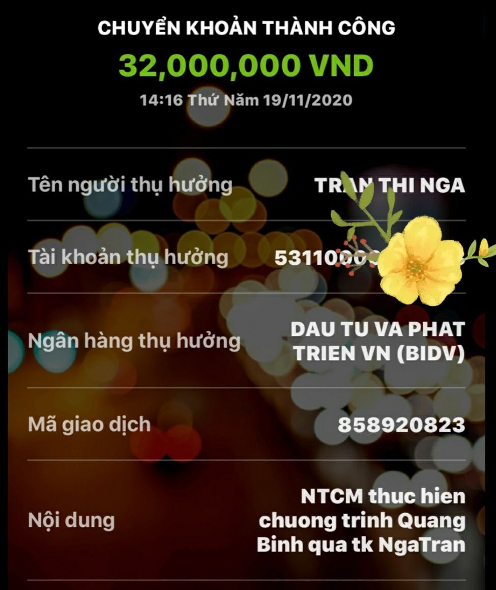 Thocon đã chuyển tiền tới Ngà Trần rồi các bạn nhé.