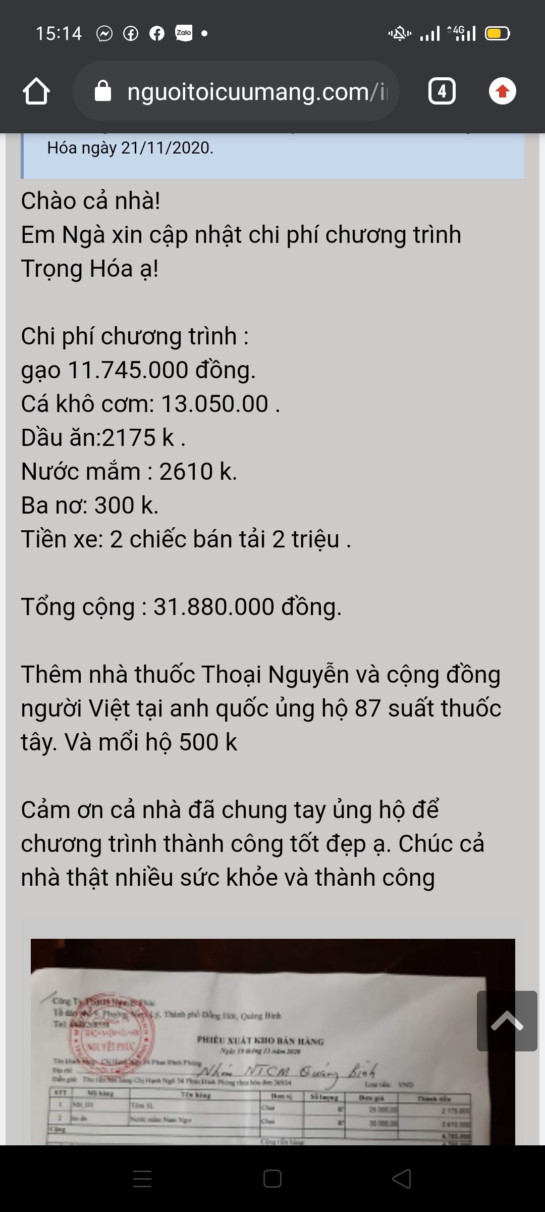 Thêm nhà thuốc Thoại Nguyễn và cộng đồng người Việt tại anh quốc ủng hộ 87 suất thuốc tây. Và mổi hộ 500 k