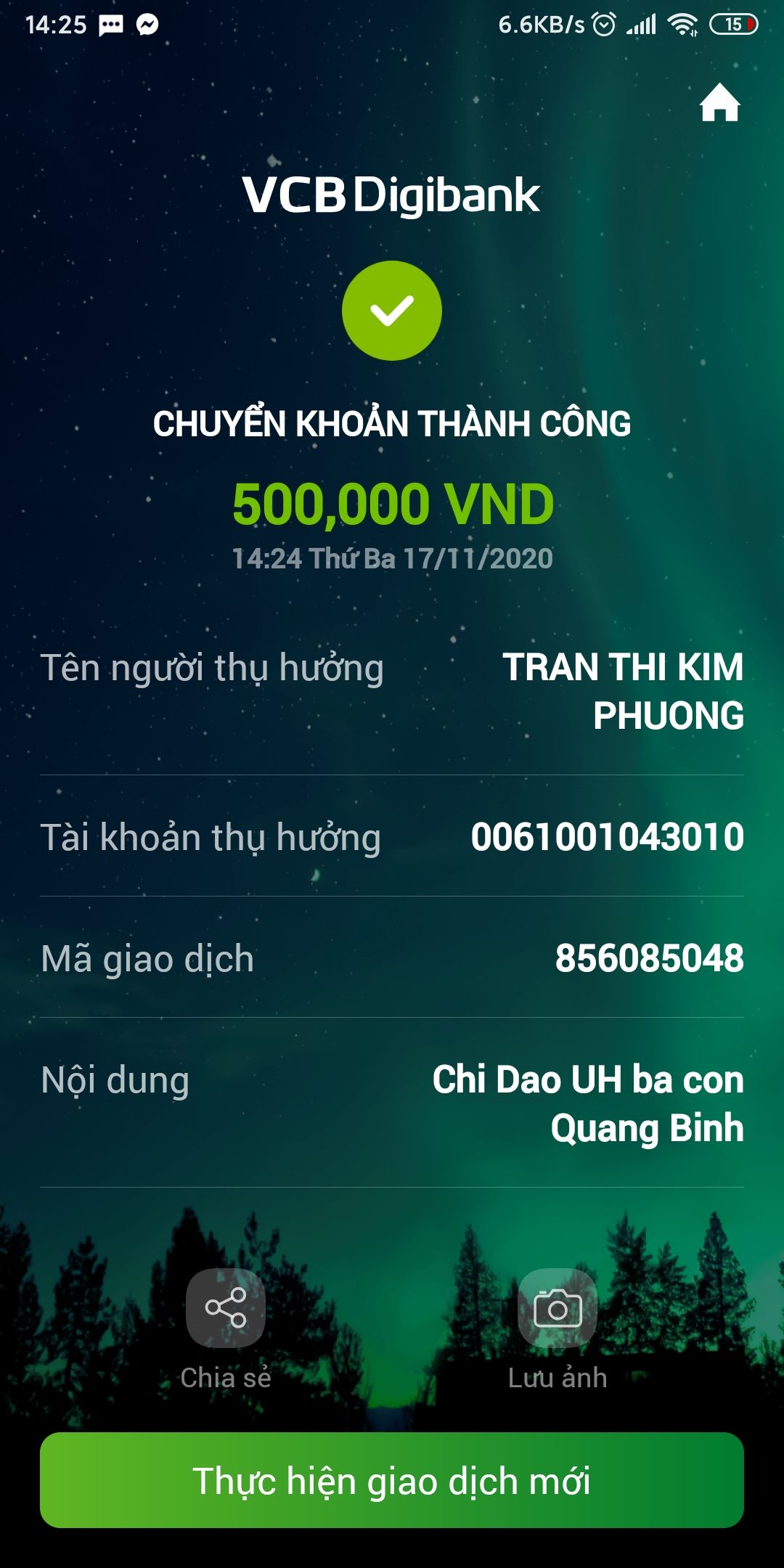 Thocon đã chuyển tiền tới Ngà Trần rồi các bạn nhé.