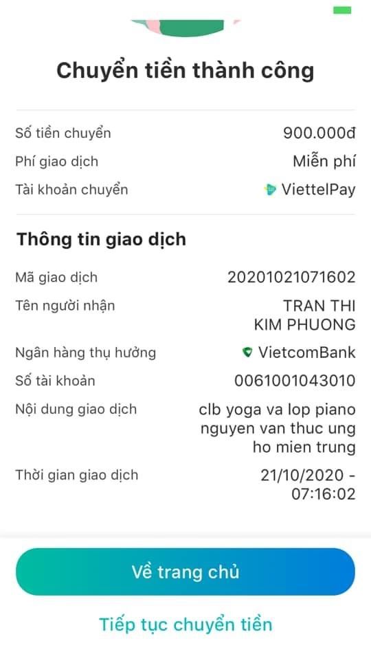 Anh Nguyen Van Thuc và CLB Yoga đã chuyển khoản 900k ủng hộ Quảng Bình.