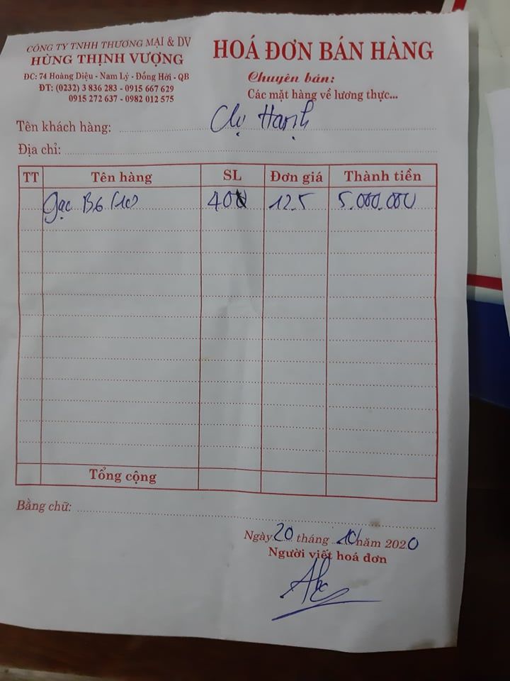 Trong 2 hoá đơn bạn đưa lên, hoá đơn gạo chưa khớp với bảng tính của bạn!