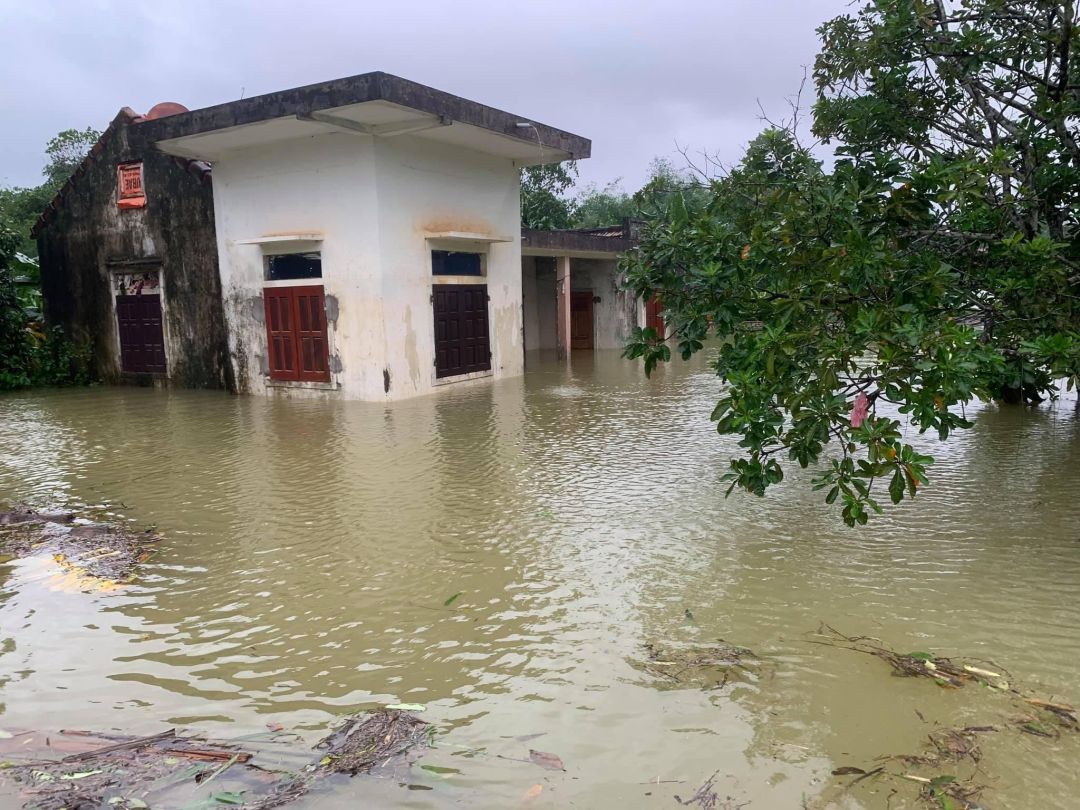 Hiện tại nước ở hai thôn Rào Trù và Lâm Ninh xã Trường Xuân nước mổi ngày càng cao có nhiều nhà gần đến mái