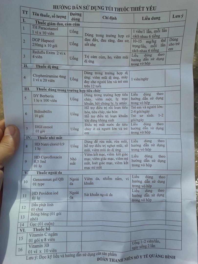 - Đoàn Thanh Niên Sở Yê Tế Quảng Bình : 70 phần thuốc thiết yếu
