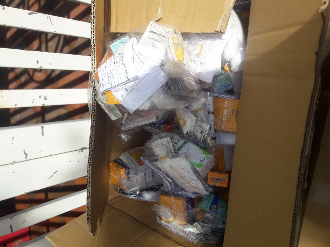 Đây là hình ảnh 70 suất thuốc thiết yếu từ Đoàn thanh niên Sở Y tế Quảng Bình và bánh chưng từ Đoàn Thanh Hóa.