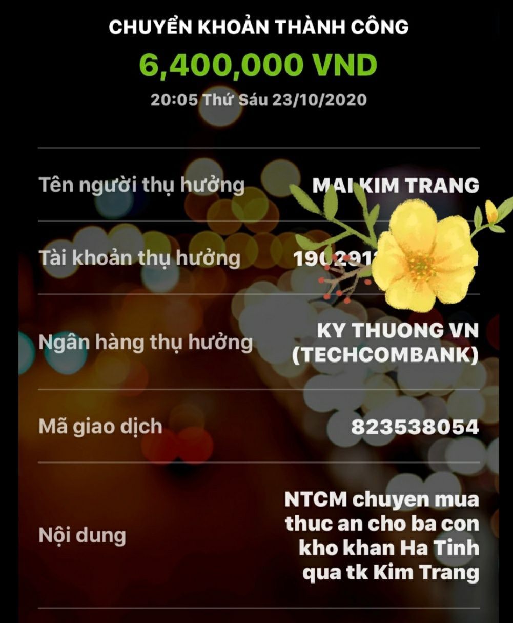 Lathuvang đã trung chuyển TK Thocon 2,000,000₫ của Michele_du và GĐ ủng hộ Hà Tĩnh cứu trợ đồng bào bị lũ lụt 2020.
