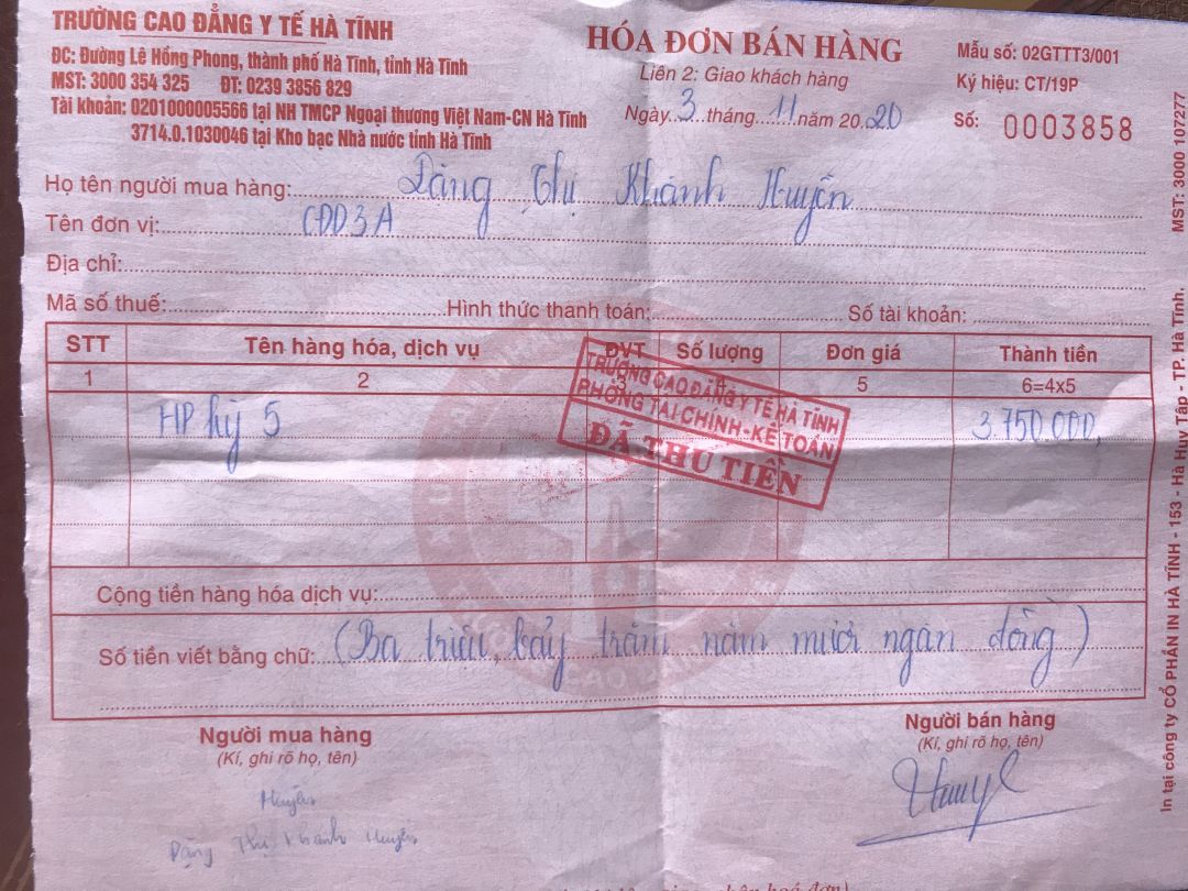 Được sự quan tâm của cả nhà và gđ Michele_du hỗ trợ cho em vay học phí kỳ 5, e xin cập nhật hoá đơn học phí kỳ 5 ạ