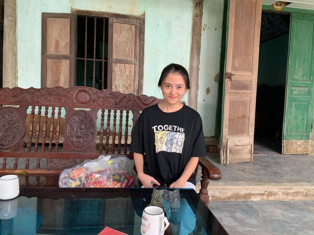 Khi Kiều Oanh đến thăm nhà chỉ có em Huyền ở nhà, cô Thành đi làm, chú Tuấn đi ra sông câu cá mong kiếm được mẻ phụ thêm cho bữa cơm chiều. Ấn tượng đầu tiên khi gặp e Huyền là một cô bé xinh xắn, hiền lành và hiếu thảo. Thương mẹ vất vả, ngoài giờ lên giảng đường em Huyền còn đi làm thêm. Được biết em Huyền hiện tại làm parttime cho một shop bán giày dép nhỏ ở trong thành phố, ca làm 16h-22h với mức lương 1,2tr đồng/tháng. Với đồng lương ít ỏi đó Huyền có thể tự lo được chi phí vặt của bản thân mà không cần phải xin đến mẹ. Nhưng với mức học phí của năm học cuối đối với bản thân em và gđ hiện tại thật sự là cả một vấn đề.
