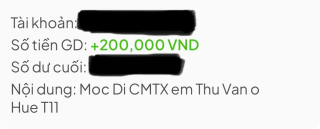 Con đã nhận được số tiền 400.000đ trong tháng 3,4 đến từ sự giúp đỡ của cô Mộc Di ạ. Con xin cảm ơn tấm lòng yêu thương của cô dành cho con ạ!