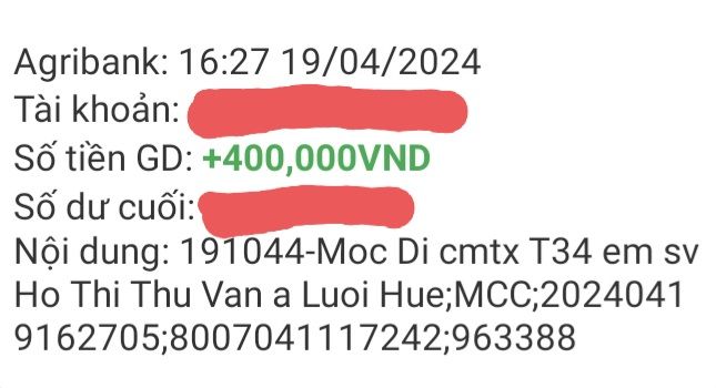 Con đã nhận được số tiền 400.000đ trong tháng 5 và tháng 6 từ sự giúp đỡ của Mộc Di rồi ạ.Con và gia đình con vô cùng biết ơn cô ạ.