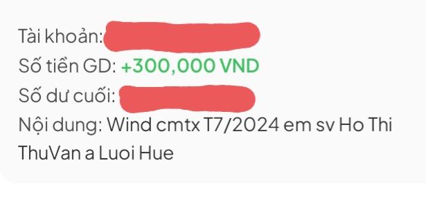 Con đã nhận được số tiền là 300.000đ trong tháng 6 từ sự giúp đỡ của cô Wind rồi ạ. Con cảm ơn cô Wind đã luôn đồng hành và giúp đỡ con trong khoảng thời gian vừa qua ạ.