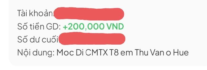 Loannguyen đã chuyển 200,000đ CMTX T9 từ Mộc Di tới Vân nhé,