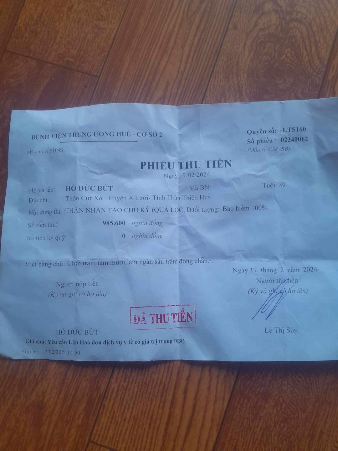 Em đã trao hỗ trợ CMTX tháng 02/2024 với số tiền là 500.000đ cho anh Bút. Hôm nay 28 Tết kịp lúc em trao để anh về bệnh viện chạy thận, ngày mà mọi người đi du xuân đầu năm (mồng 1 Tết) lại đúng lịch anh về bệnh viện chạy thận lần tiếp theo. Gia đình biết ơn chị Yến trong thời gian qua đã luôn giúp đỡ cho anh và gia đình. Năm mới chúc chị và gia đình vạn sự như ý, hạnh phúc và bình an ạ!