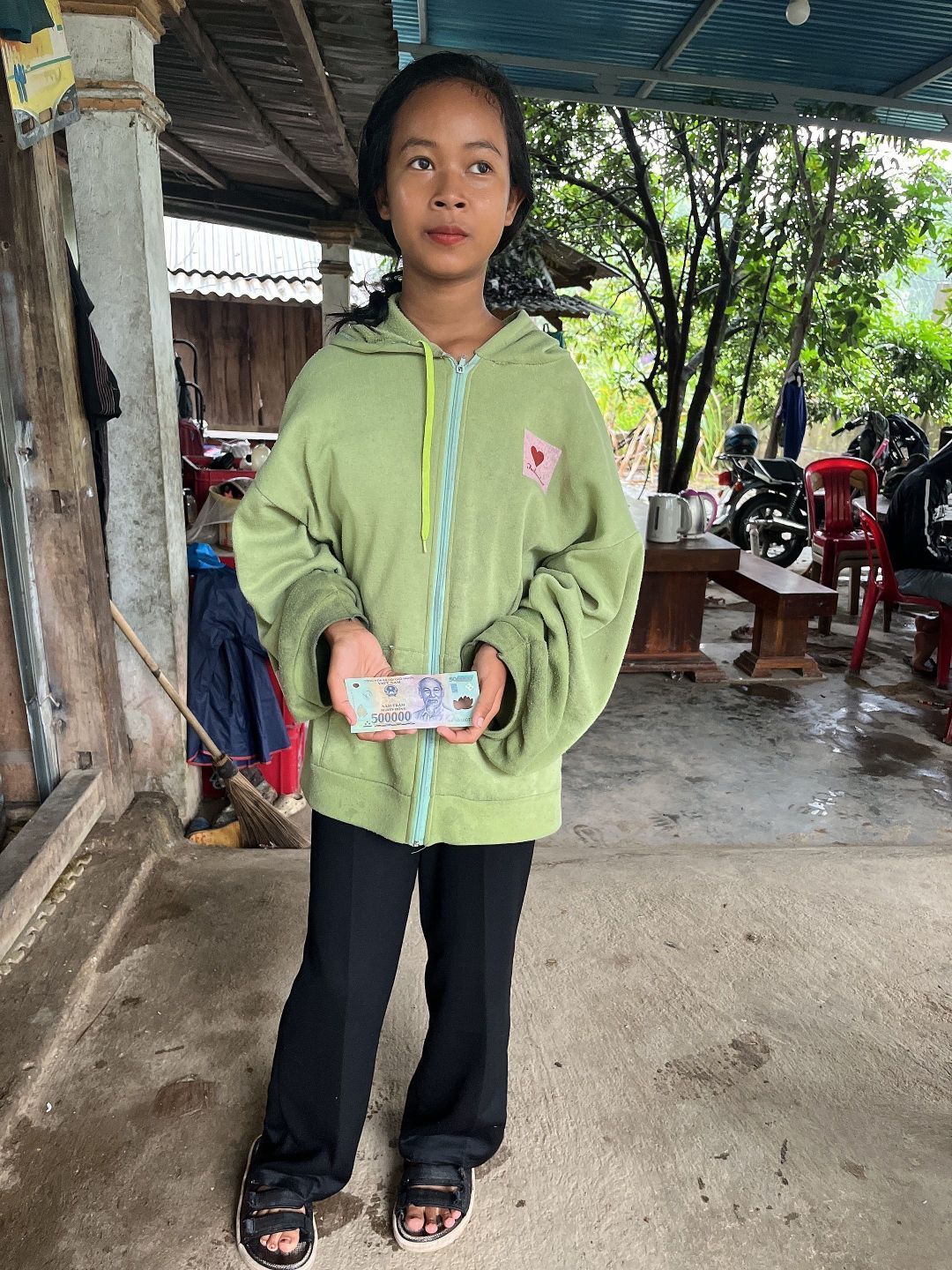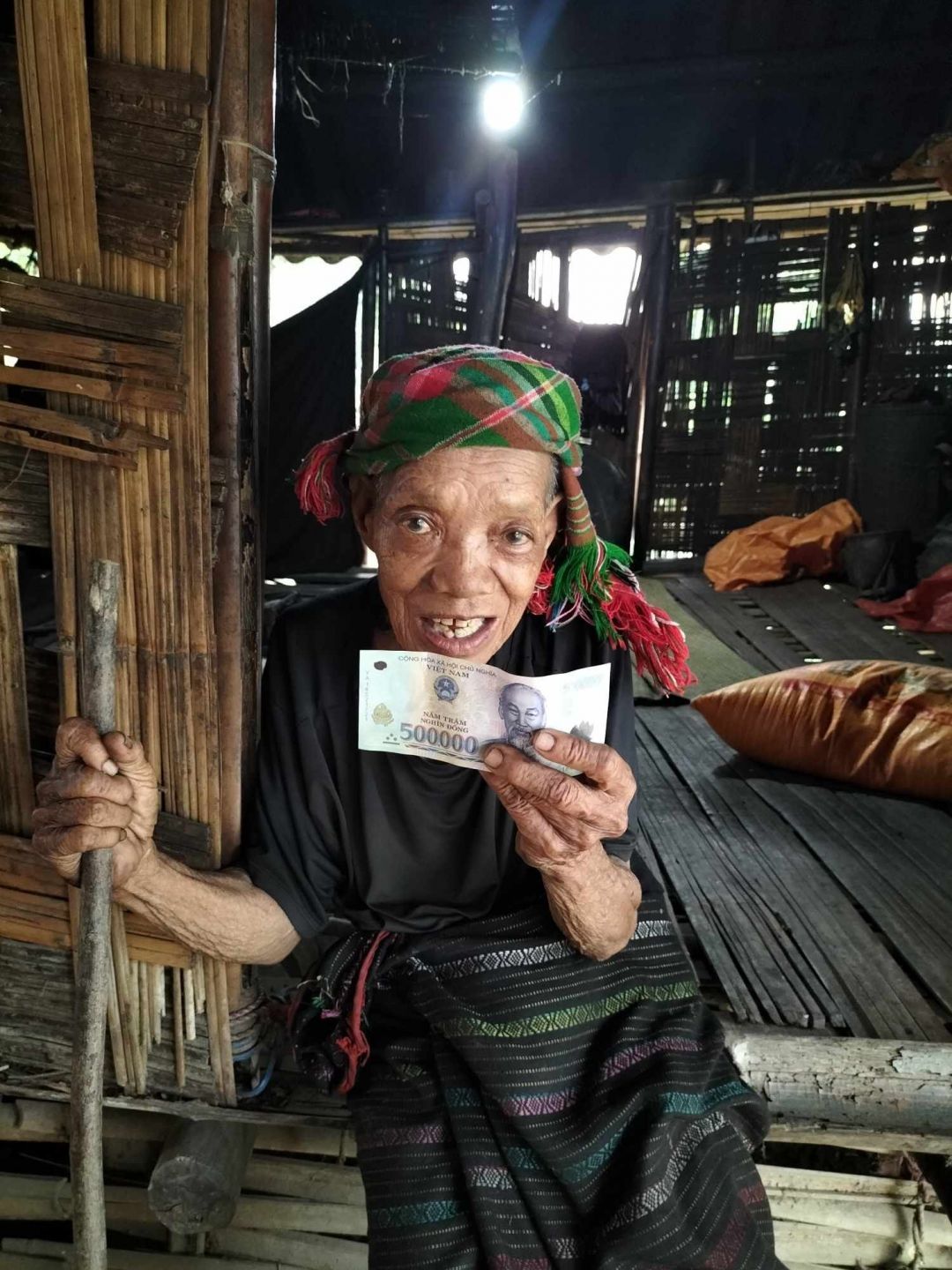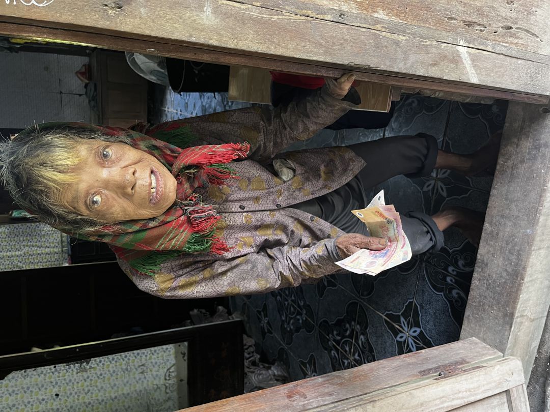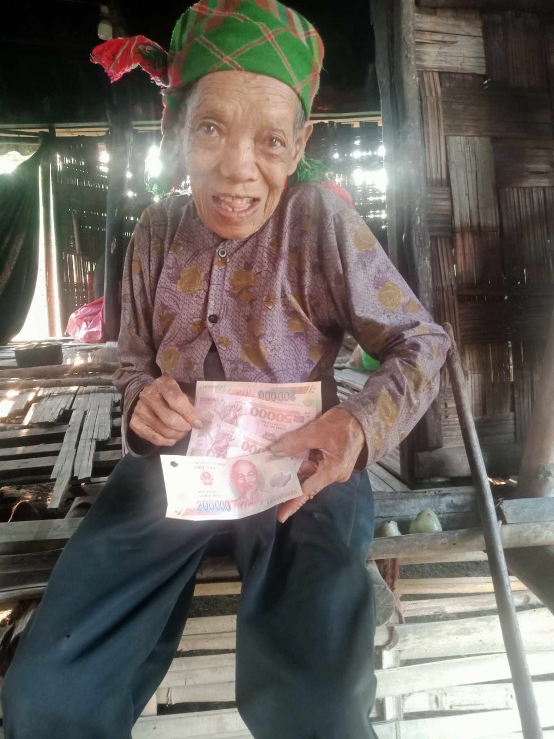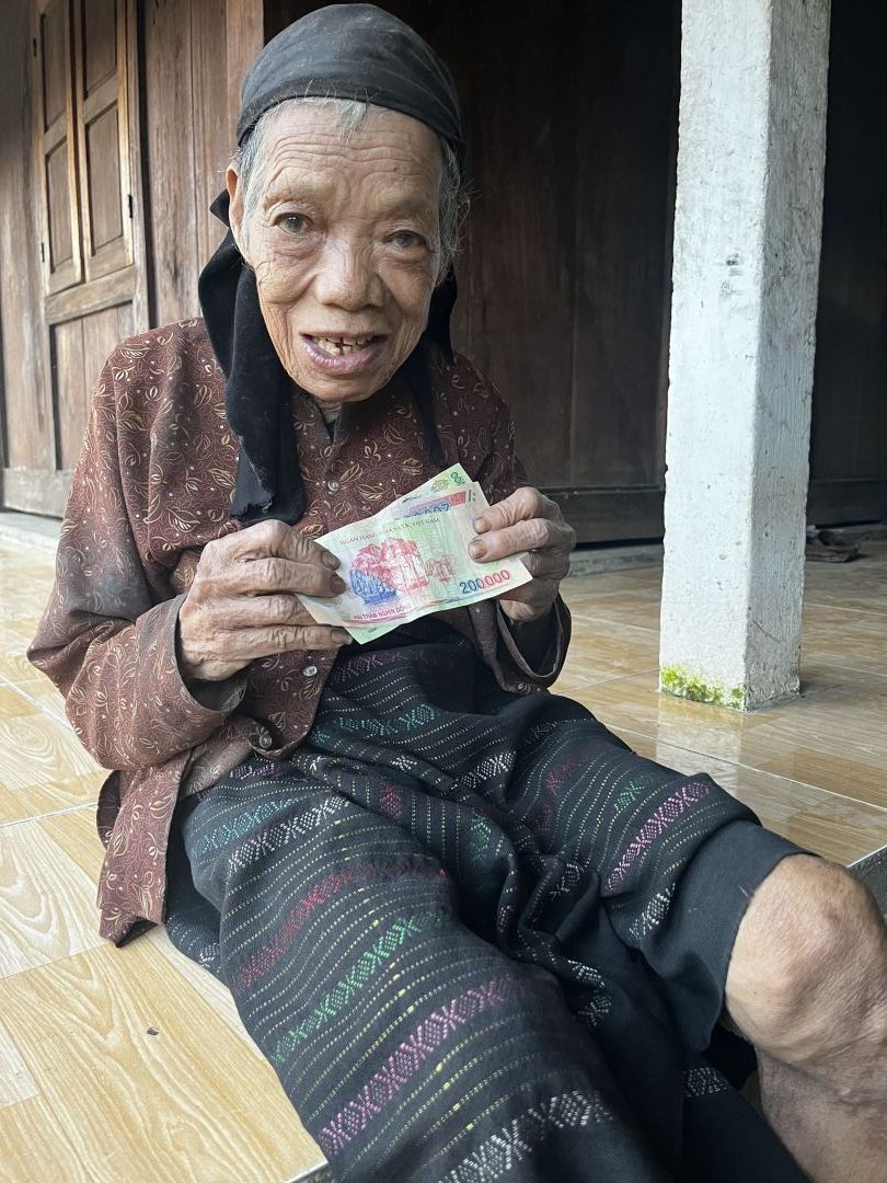 em trao quà cho cụ Cu Crung số tiền là 1 triệu đồng,tiền chị Yến cho cụ đi chợ trong thời gian cụ ốm. thay mặt cụ em biết ơn chị Yến nhiều ạ.