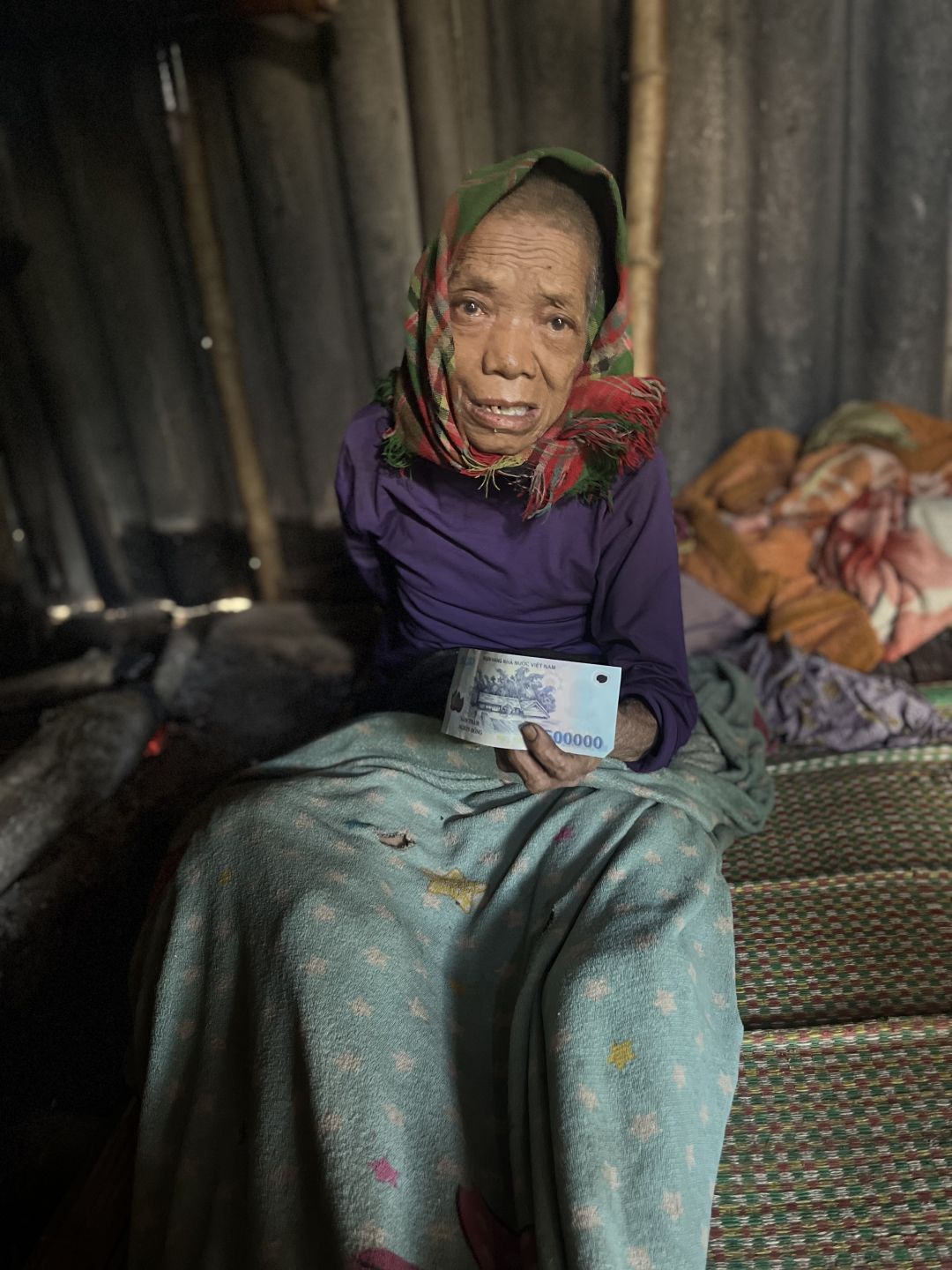 Em trao quà tháng 5 cho cụ Cu Crung với số tiền là 500 nghìn đồng. Thay mặt cụ em biết ơn chị Yến và quý MTQ nhiều ạ.
