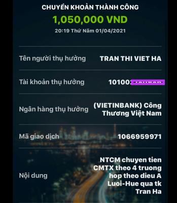 Thocon đã chuyển tiền tới Tran Ha cùng với 3 hoàn cảnh khác rồi nhé.