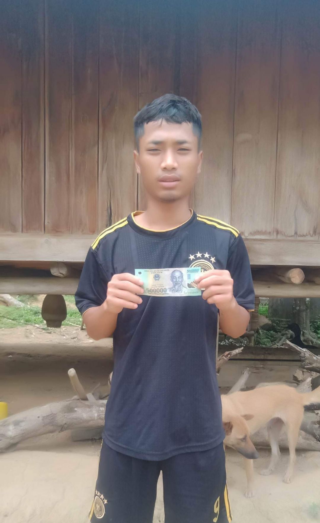 Em trao quà tháng 1 cho 4 anh em Hồ Văn Hào với số tiền là 500 nghìn đồng