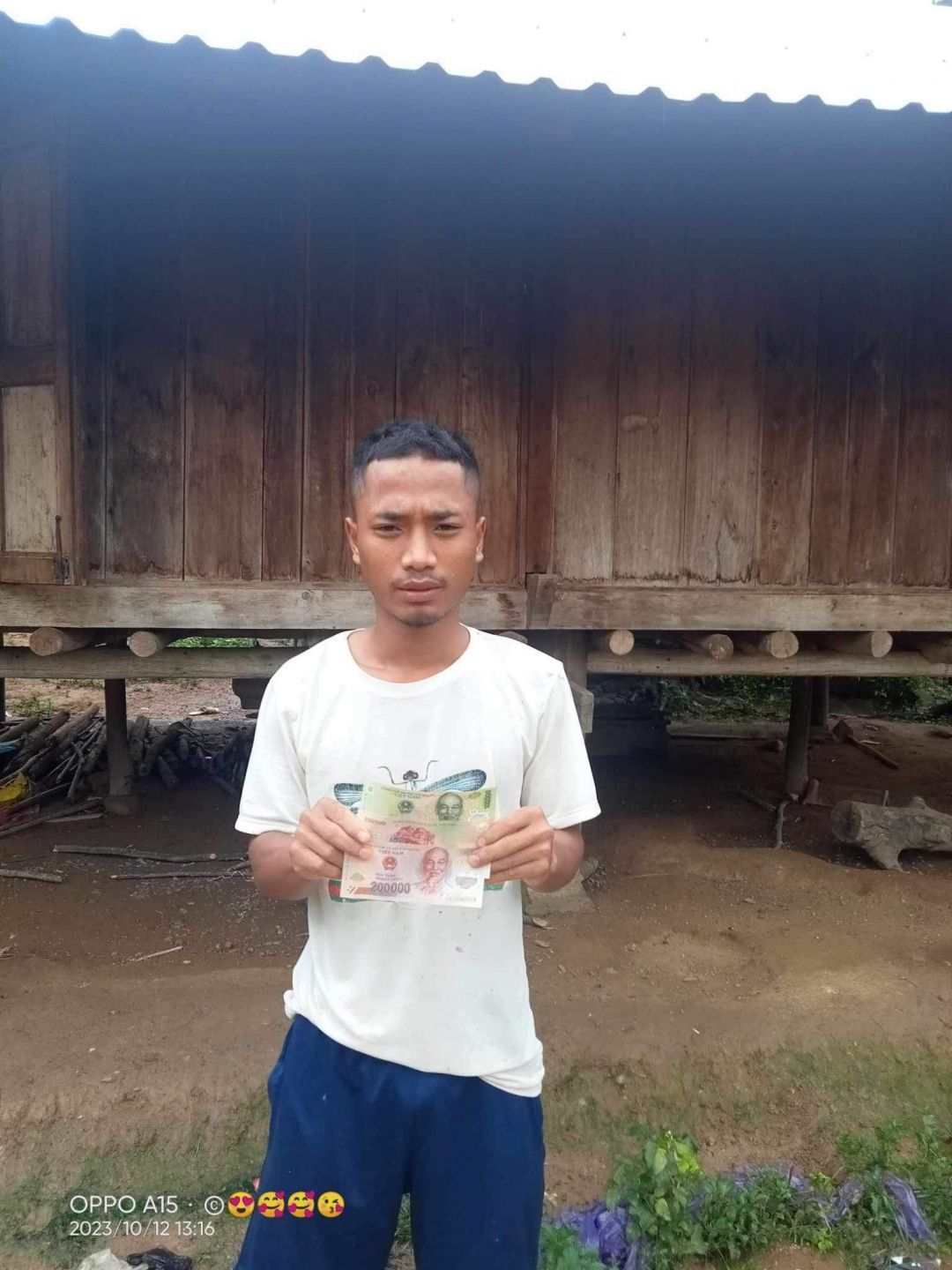 Em trao quà tháng 12 cho 4 anh em Hồ Văn Hào với số tiền là 500 nghìn đồng