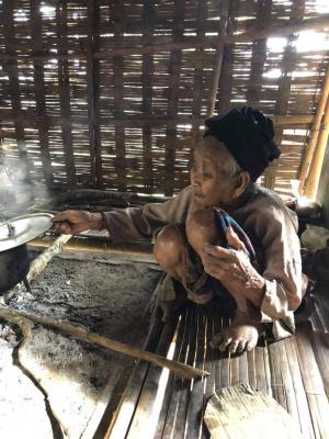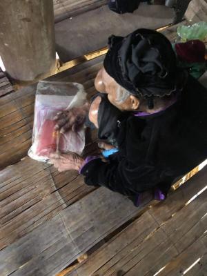 Hoàn cảnh bà La Thị Xuân tụi con đã xác minh , khi đến với gia cảnh bà thật khiến người chứng kiến không khỏi xót xa , hai mẹ con bà ở ngôi nhà sàn trong nhà không có vật dụng gì đáng giá ngoài tập giấy chứng nhận hộ nghèo nhiều năm liền , gia đình hộ nghèo bền vững . Hai mẹ con bà sống cùng nhau , trong hình là hình ảnh cụ La Thị Tặc là mẹ của bà Xuân bà sinh năm 1934 bà năm nay 86 tuổi , khi tụi con đến xác minh thì bà Xuân đang đi vắng chỉ còn mình cụ Tặc ở nhà một mình nhìn người cụ gầy còm , da bọc xương với manh áo mỏng đang ngồi bên bếp lửa rất đáng thương . Nhà chẳng có vật dụng gì giá trị ngoài những giấy tờ chứng nhận và  tấm chăn chiếu cũ và một ít vật dụng đã cũ được người khác cho hai mẹ con bà . Cuộc sống của hai mẹ con bà Xuân khá khó khăn , hai mẹ con sống bằng tiền trợ cấp , sức khoẻ của bà Xuân cũng không tốt lắm nên lúc nào khoẻ trong xã có ai thuê cắt cỏ thì bà nhận làm , ai tốt thương cho hoàn cảnh thì họ cho 100k , ai không thương thì đưa cho bà vài chục . Nhưng do sức khoẻ không tốt và công việc không phải lúc nào cũng có nên cuộc sống của hai mẹ con vẫn chủ yếu là dựa vào trợ cấp hàng tháng . Cụ Tặc mẹ của bà Xuân cũng có mấy người con nhưng hoàn cảnh cũng khổ , không đủ ăn đủ mặc cũng thuộc diện hộ nghèo nên cũng không chăm sóc được cho cụ , chỉ còn bà Xuân là không có chồng sống một mình nên hai mẹ con cưu mang đỡ đần nhau những tháng năm tuổi già . Gia cảnh của hai mẹ con bà thật sự rất khó khăn , khi thấy bà ngồi bên bếp lửa vì lạnh mà khiến người nhìn vào không khỏi xót xa , không cầm được nước mắt . Gia cảnh thực sự vô cùng khổ . Mở nồi thức ăn trên chạn treo chỉ có ít măng rừng băm nhỏ còn sót trong nồi , với ít cơm nguội còn dư là bữa trưa bà cụ để dành lại cho con gái . Trên bếp là nồi canh với vài ba lá rau với chút nước loãng , nắm