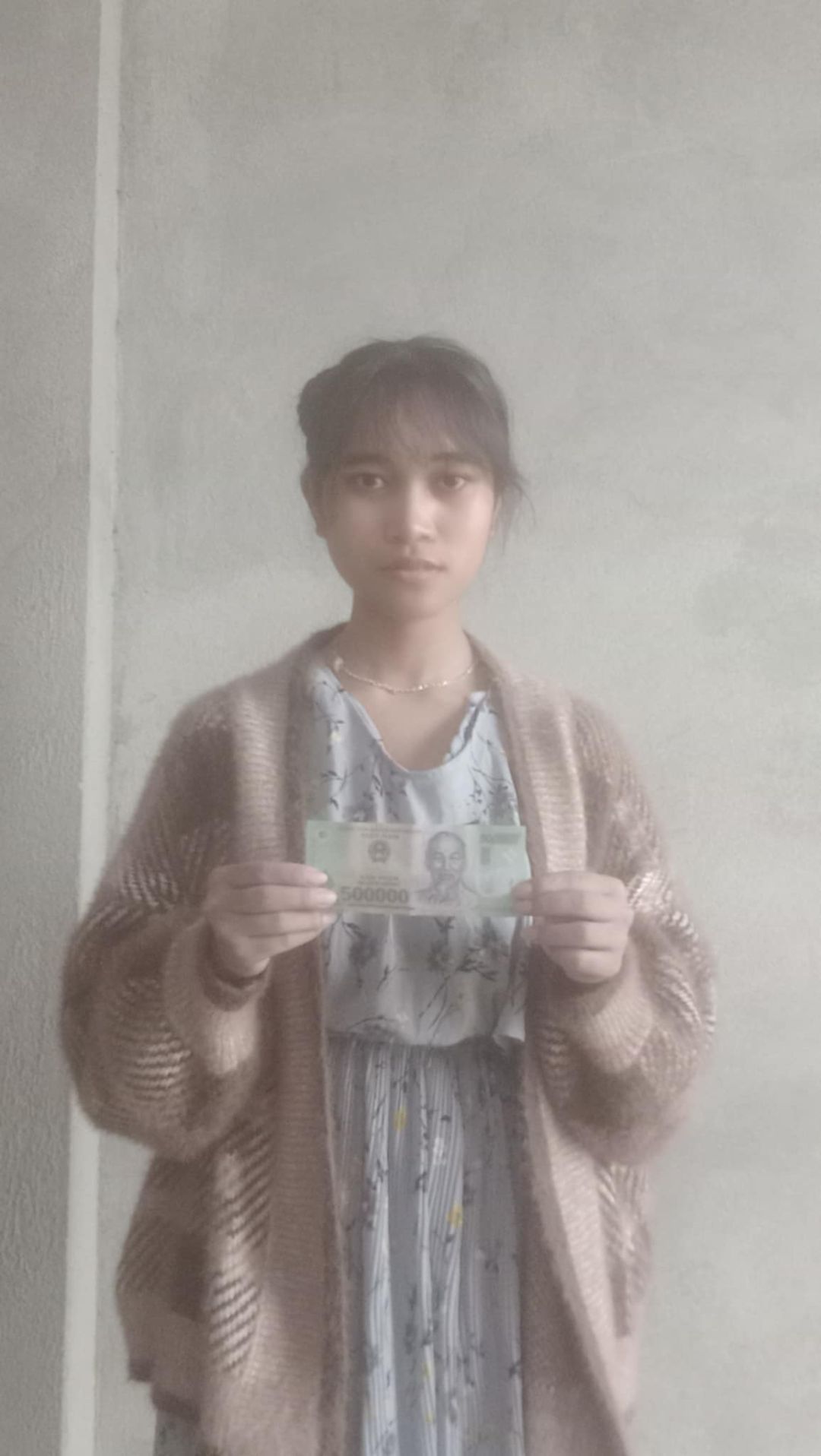 Em đã trao số tiền Cmtx tháng 4: 500.000 đ cho gia đình chị Nhân