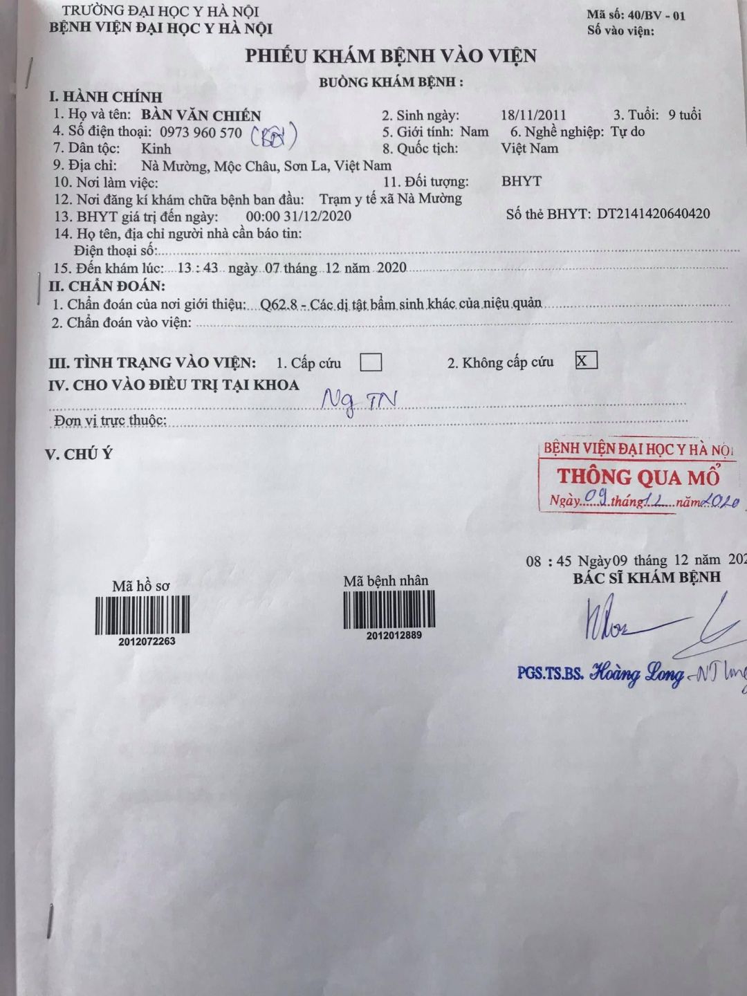 Mong các bạn tại Sơn La xác minh và lên phương án hỗ trợ cho cháu được mổ theo lịch hẹn của BS