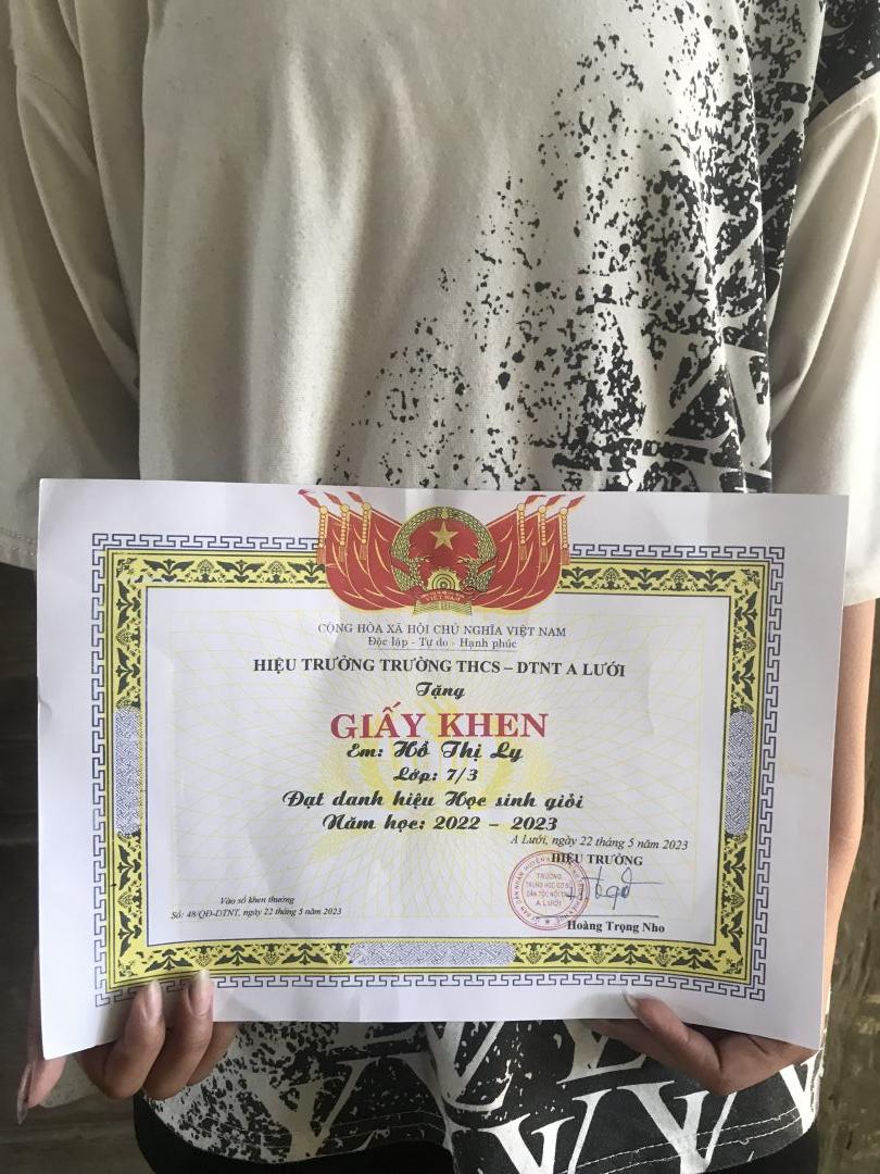 Em xin cập nhật thành tích học tập của cháu Hồ Thị Ly (Con gái của chị Y Lê): Cháu Hồ Thị Ly đã có thành tích đạt danh hiệu Học sinh giỏi năm học 2022 - 2023.