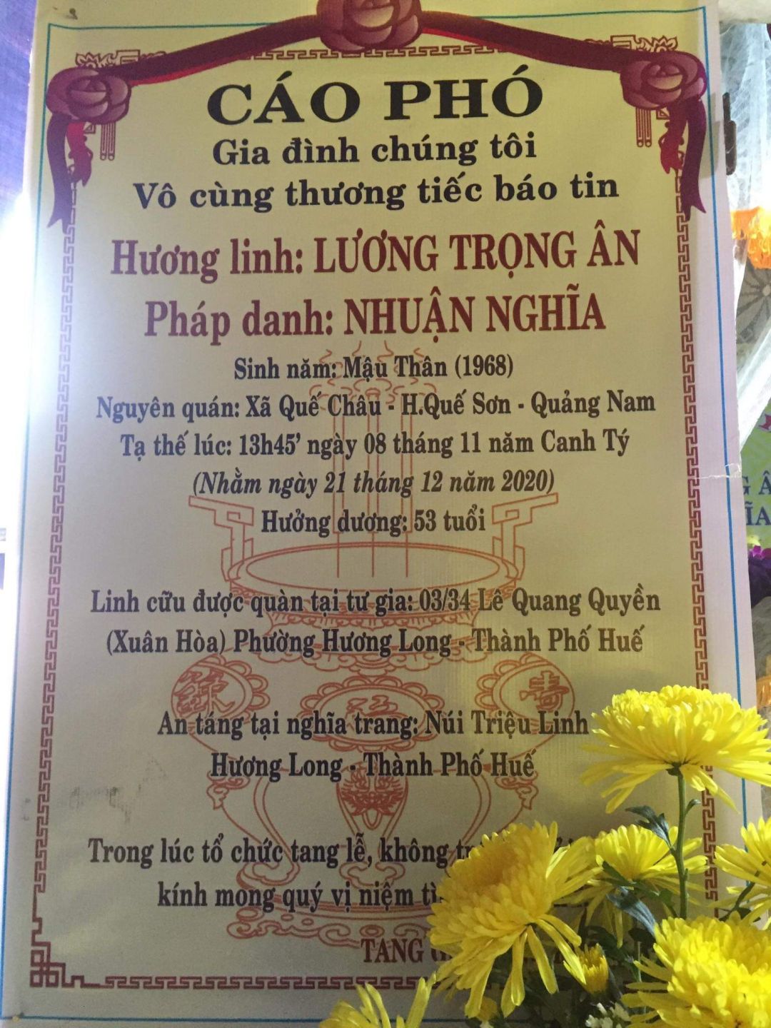 Tác giả Chủ đề: Hương Long, thành phố Huế, đám tang chú lương công ẩn mất do bị ung thư  (Đã xem 2099 lần)