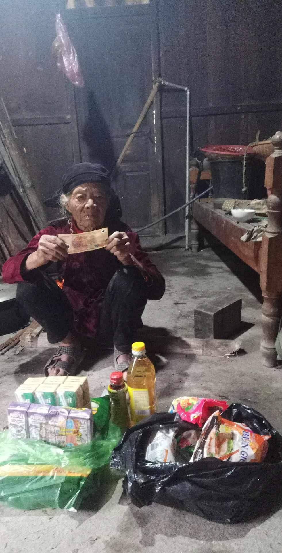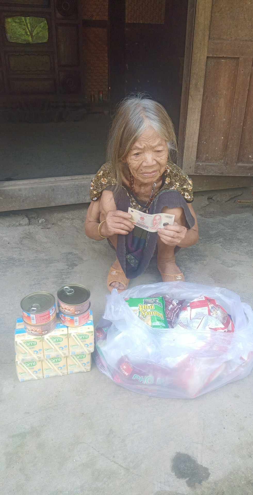 Em đã trao quà CMTX t5:200k và nhu yếu phẩm 300k cho bà Kan Hắc ạ!
