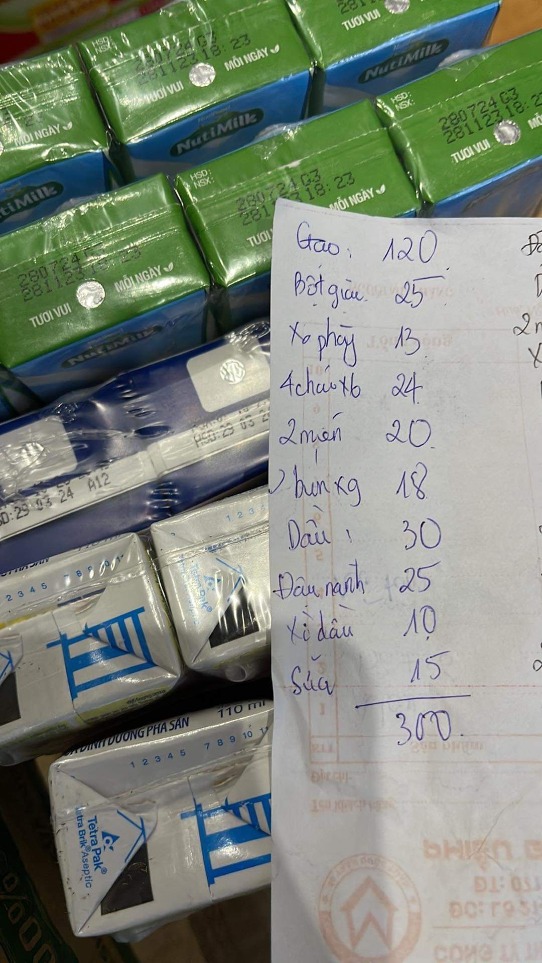 Em đã trao quà CMTX t7 nhu yếu phẩm 200.000đ và 100.000 đ tiền trứng