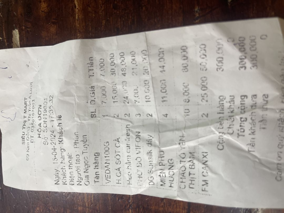 Em đã trao quà CMTX t4 200k và nhu yếu phẩm 300k cho bà Kan Hắc ạ!