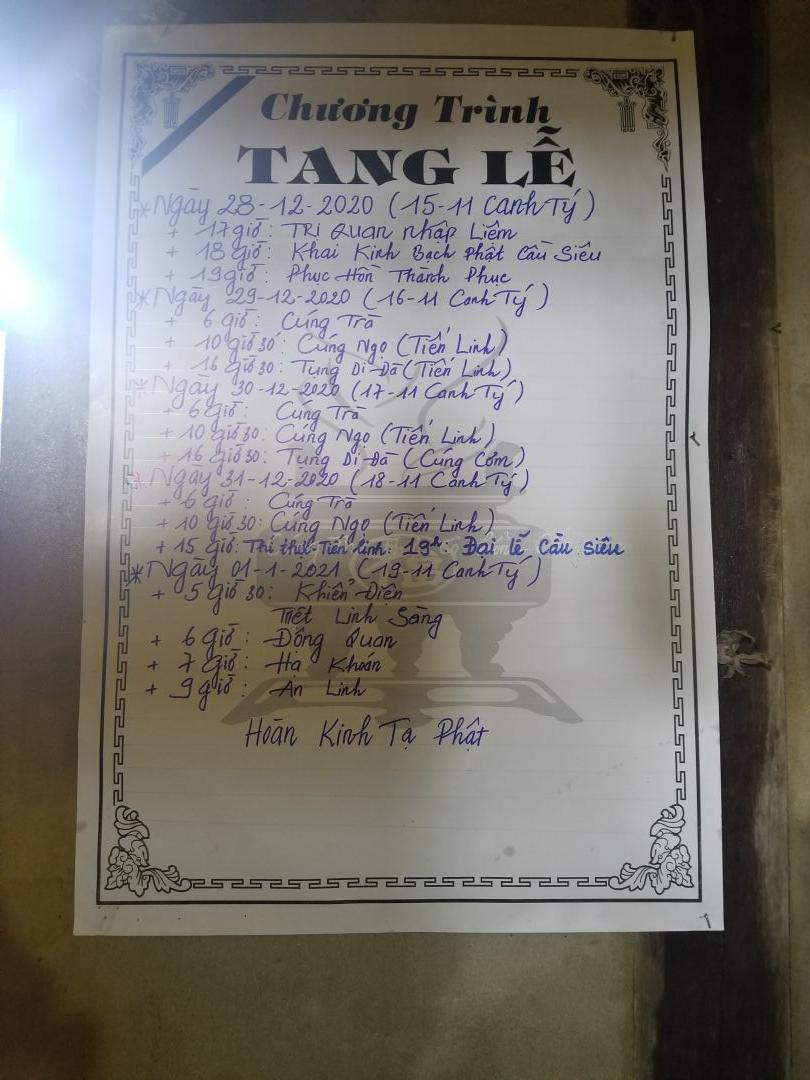 Đám đưa vào lúc 6h sáng ngày 1/1/2021 (19/11 âm lịch)